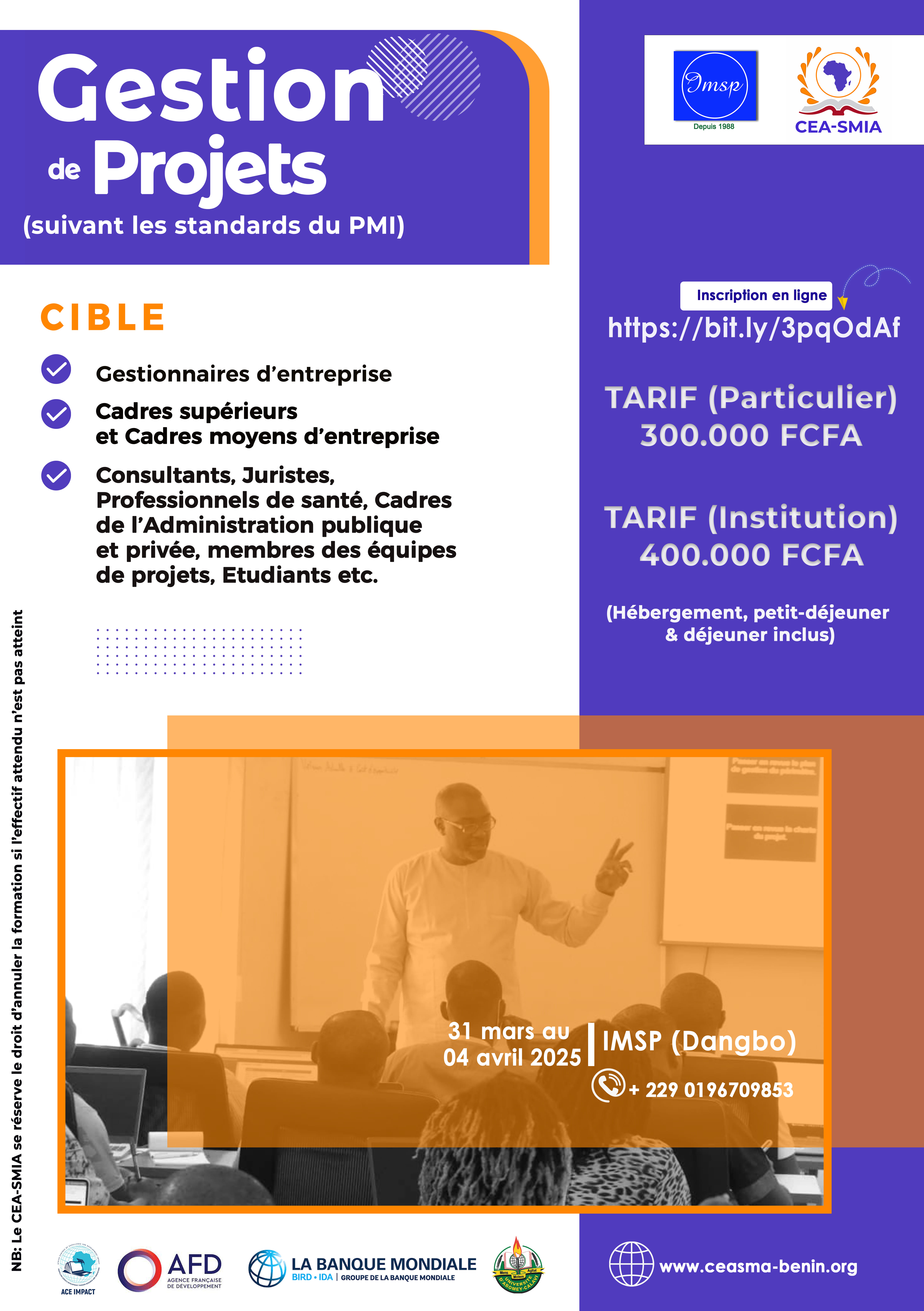 Coût ( F CFA ): 300.000/400.000 - Télécharger le flyers :